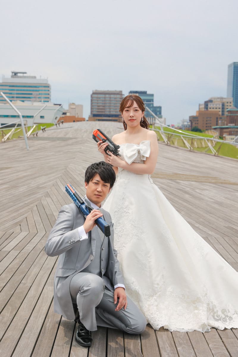 お二人の出会いのきっかけとなったアイテムと一緒に撮影しました!
