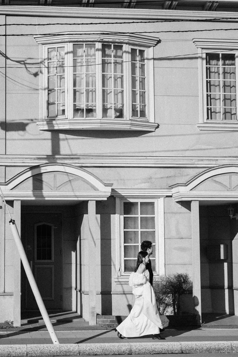 洋装では八幡坂周辺でストリートフォトのような雰囲気で、良いスポットを探しながら撮影しました^^