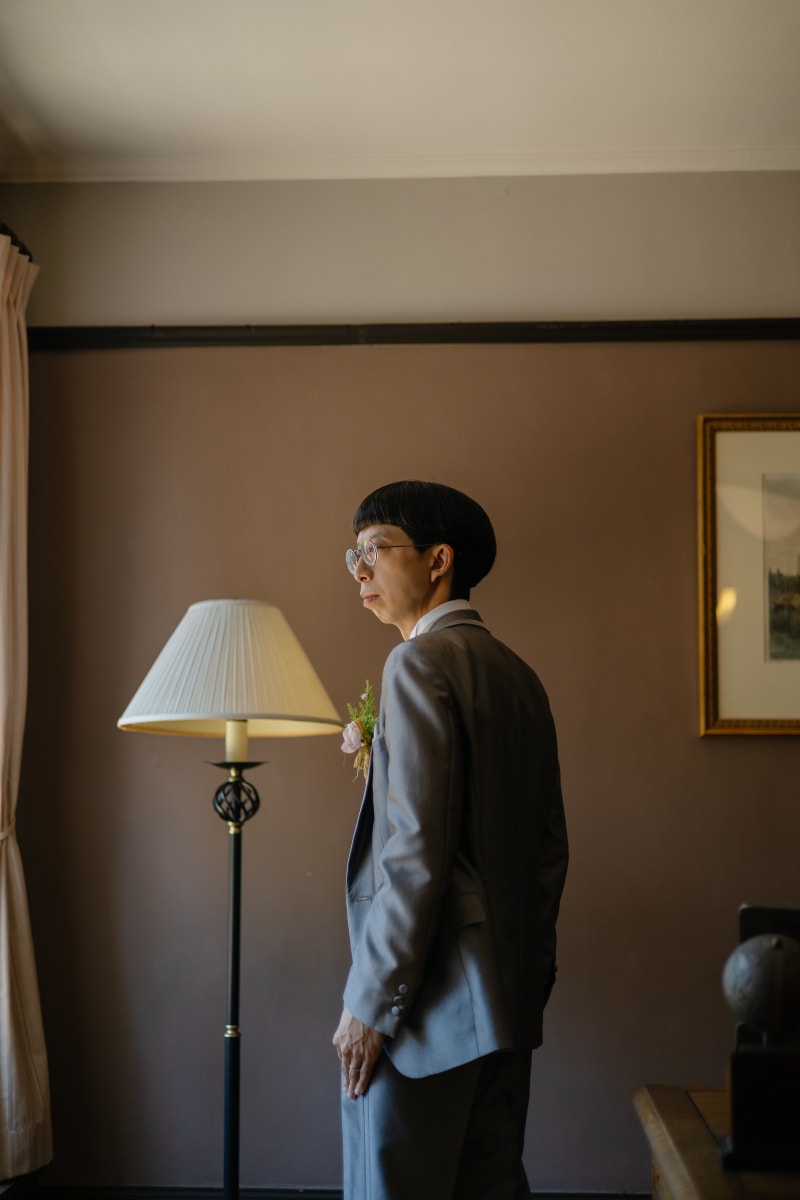 お次は新郎様のソロカットです。お部屋の雰囲気とご新郎様の雰囲気が一味違いますね〜♪