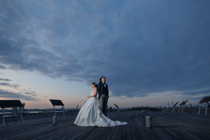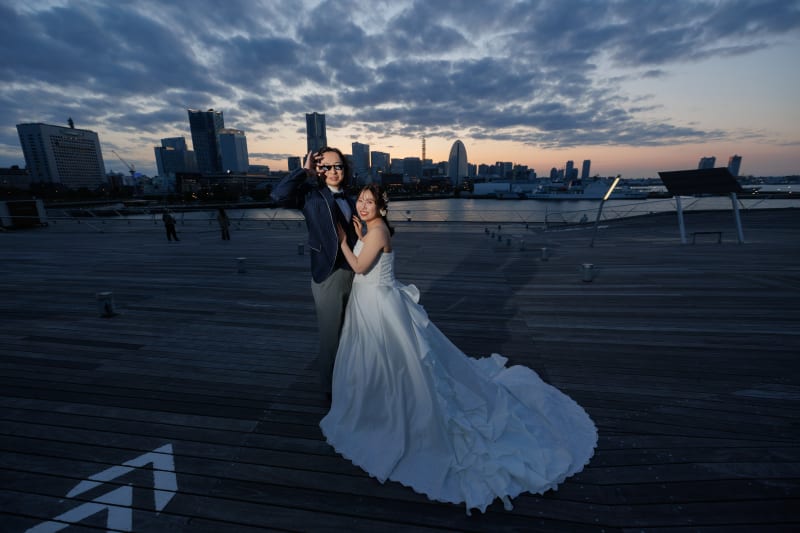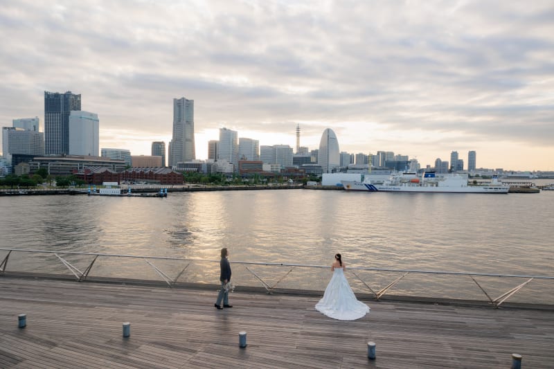 撮影日は絶好のロケーション日和で、大桟橋から眺めることの出来る、広大な海・空・みなとみらいの街並みをバックにたくさん素敵お写真が撮れたので早速ご紹介していきます^^