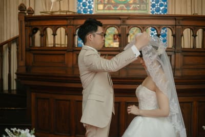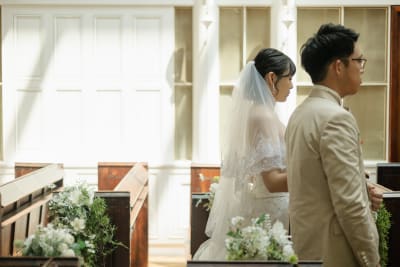 チャペルではベールアップのシーンや指輪のシーンなど結婚式を思わせる一枚一枚を丁寧に残しました。