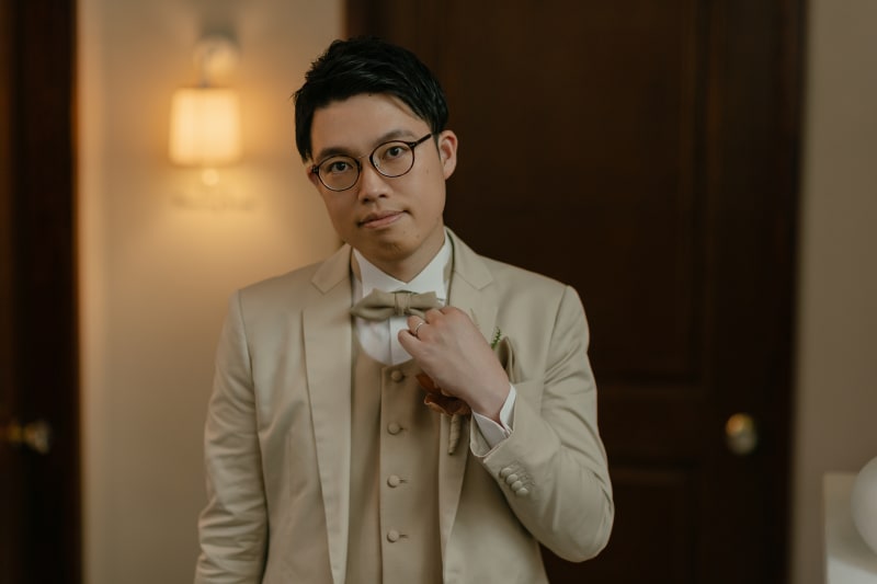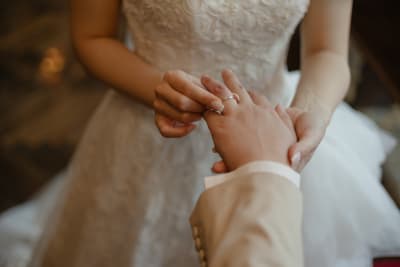 新婦様から新郎様へ指輪をそっとはめてもらいました