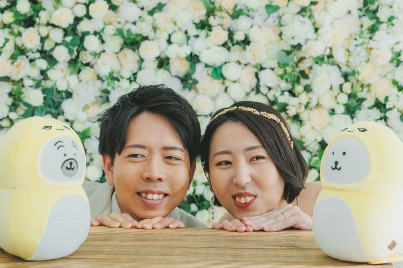 まずはお二人でバラの背景で撮りました。持ち込みのぬいぐるみなども使って撮っていきます^^
