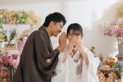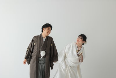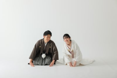 白い背景でシンプルに撮影しました!正座のカットでは和装らしい雰囲気をしっかり残せます!