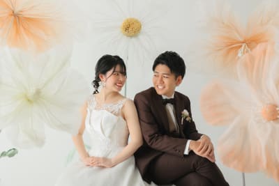駅前店ではお花屋さんのセットやシンプルな白壁の背景がございます!様々な撮影の仕方ができます!