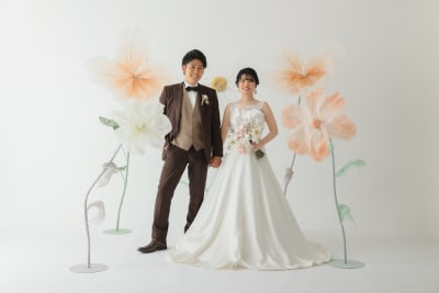 シンプルながらもお花のインパクトで一気に華やかさが増し、お二人の装いもしっかり引き立ちます!