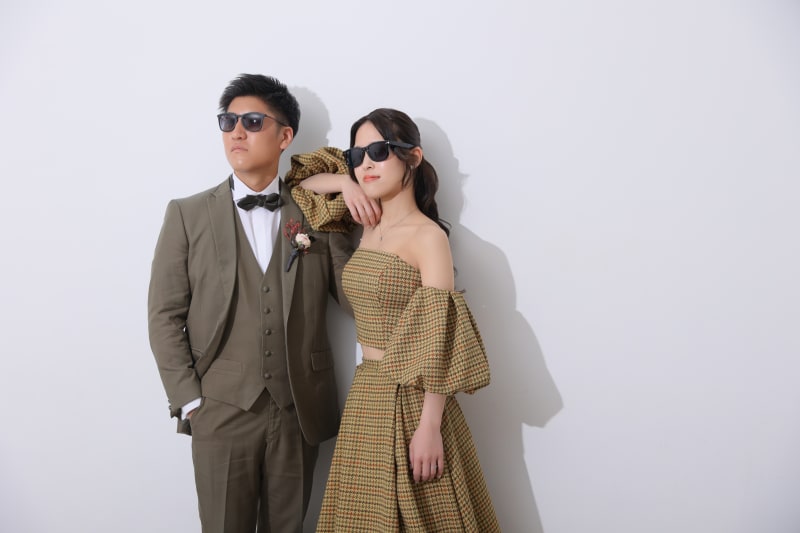 今回は、シンプルな白背景を主に黄色のカラードレスを着てかわいいウェディングフォトを撮影したのでご紹介します!