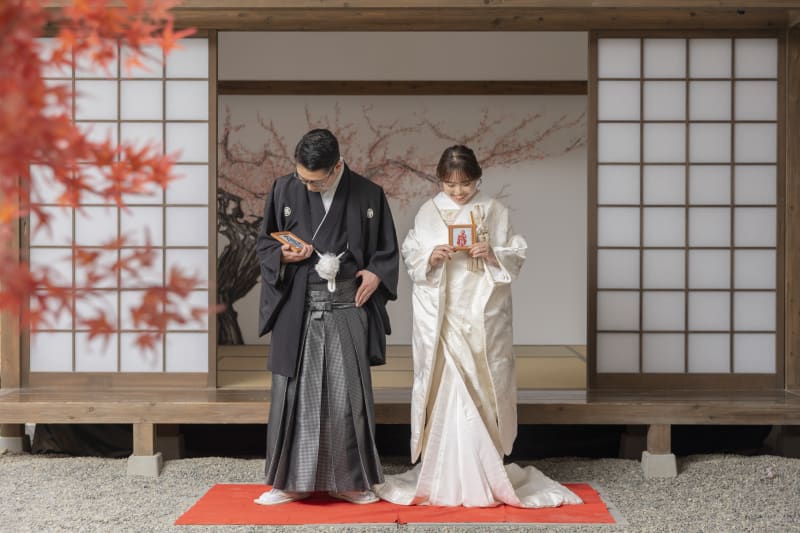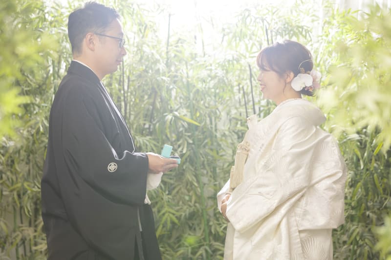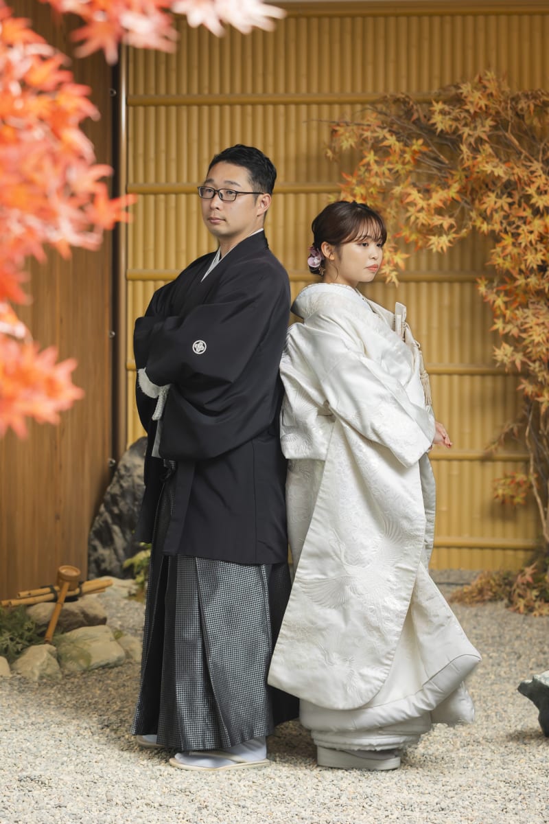 新郎様は黒の紋付で、新婦様は白無垢のお衣装でとってもお似合いでしたね^^