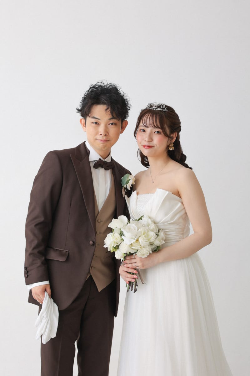 新郎様のブラウンのタキシードととっても相性がよくてお似合いのお二人です^^