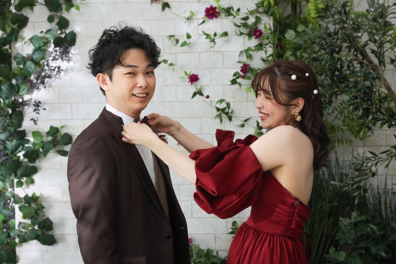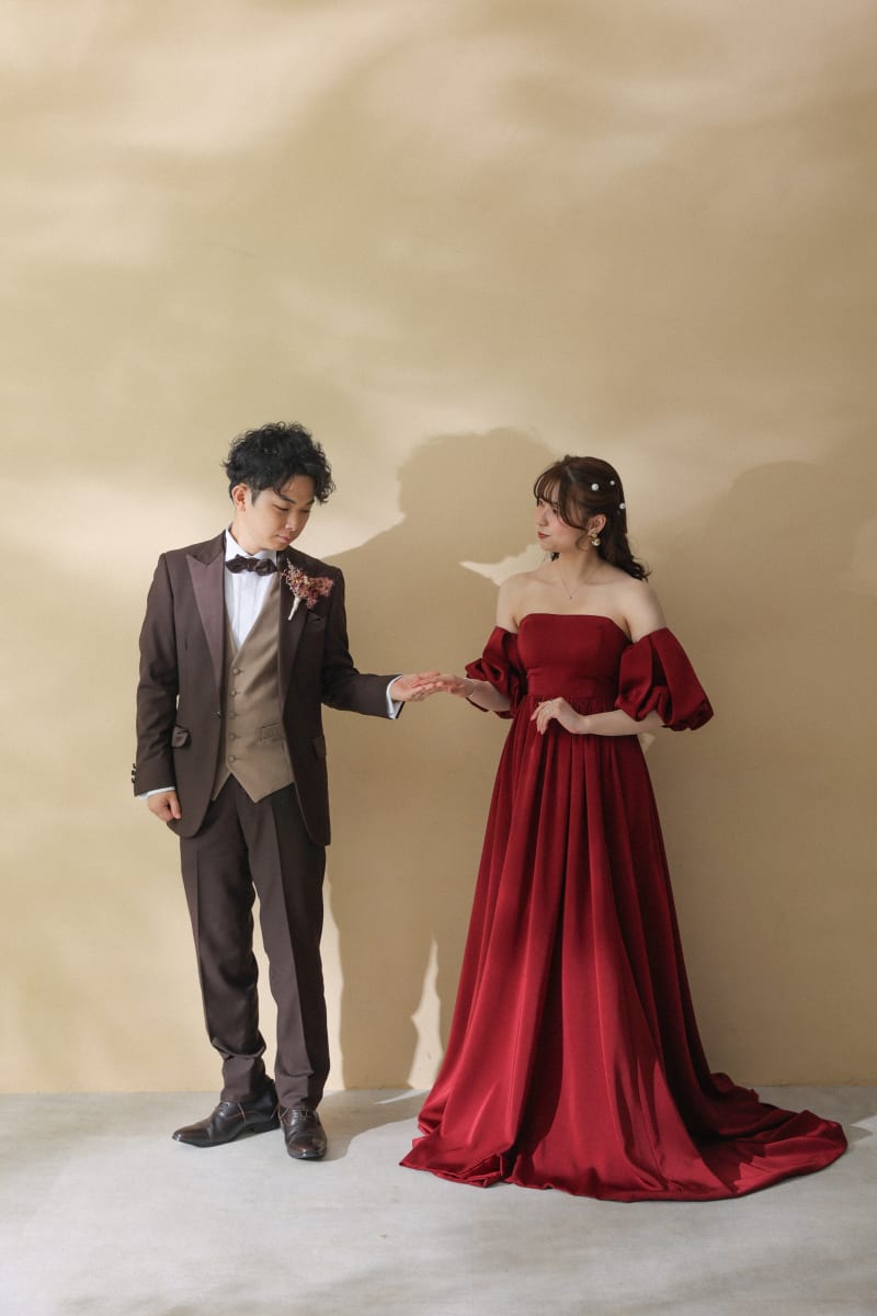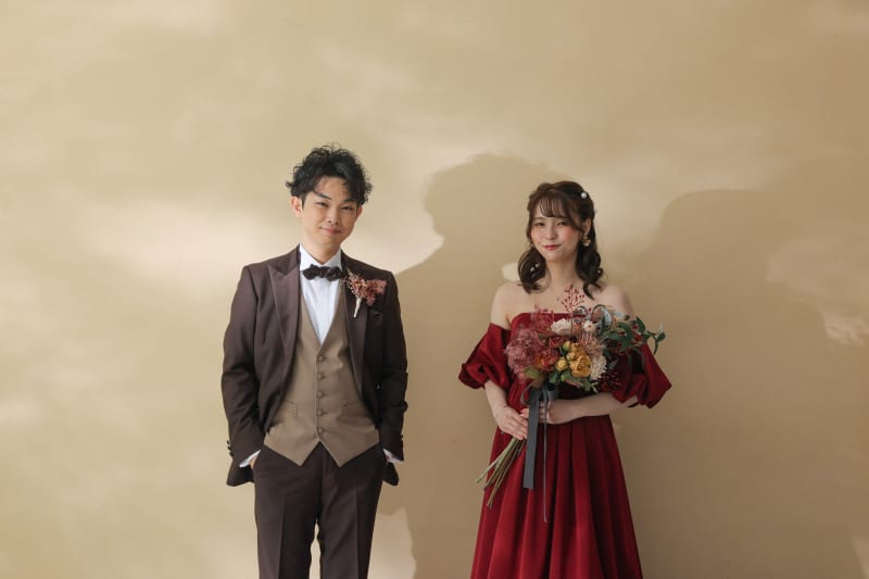 新婦様はワインレッドのカラードレスと、純白のドレスの2着で撮影を行いました!
