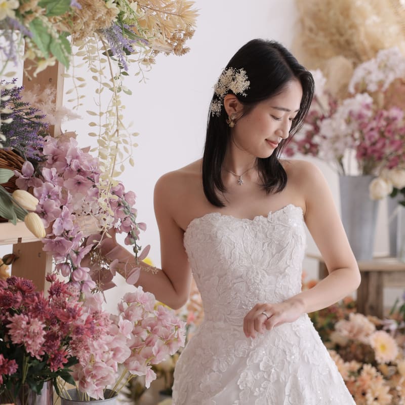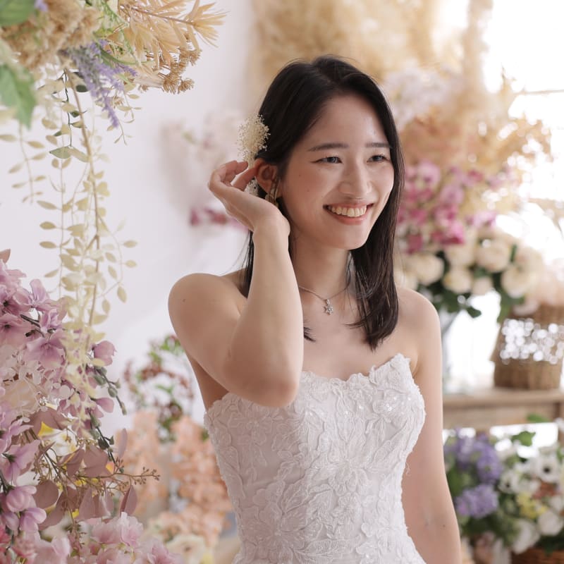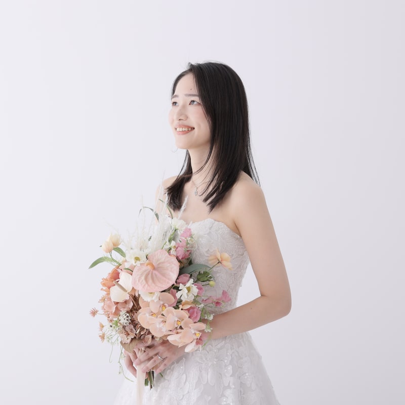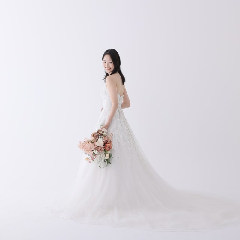 真っ白な背景に真っ白なドレス…そしてにこっり笑顔の新婦さん…