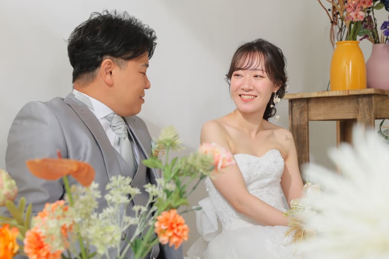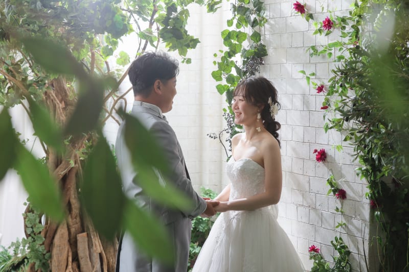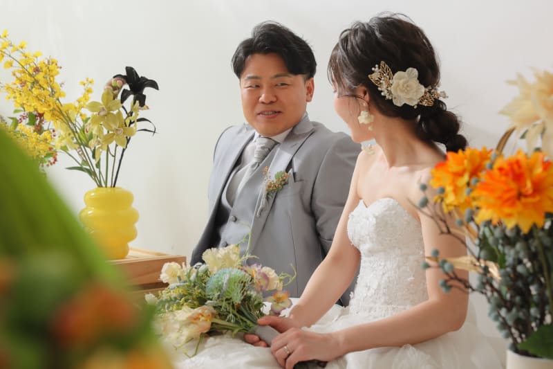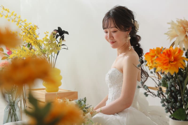 他にもドライフラワーやガーデンの背景などを使って華やかに撮影していきました^^