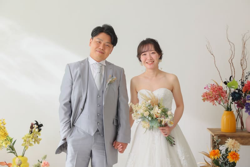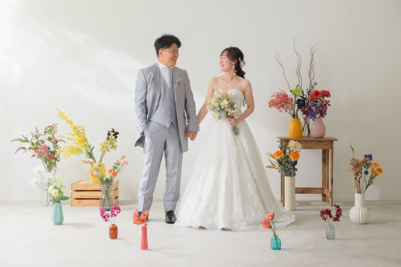 まずは白壁でシンプルに撮っていきました!お二人のソロカットも!