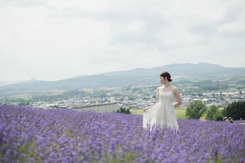 1面のラベンダーと、丘の上からの景色と、空と一緒に撮影ができます^^