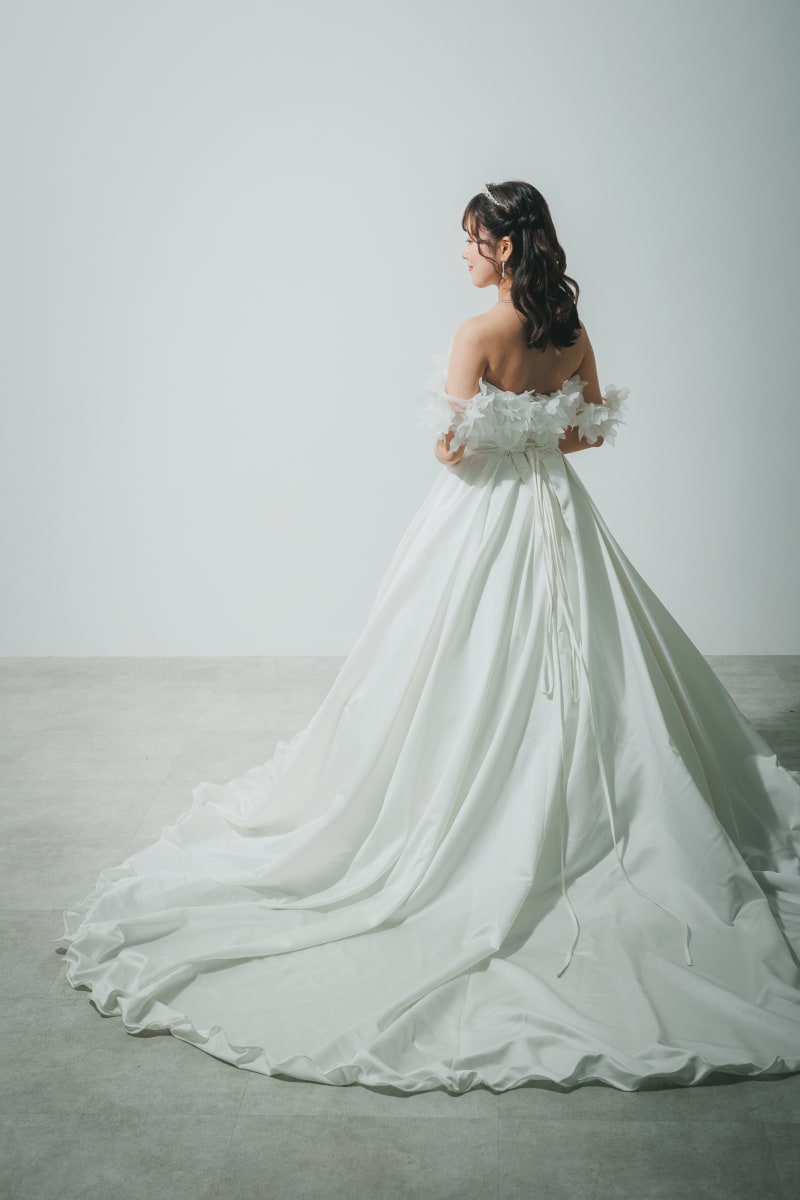 影を使ったショットを多めに撮ったので、ドレスの立体感が際立ち重厚感が出ますね。