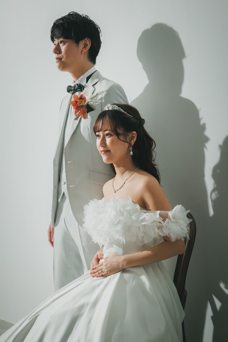 本日はハウススタジオにてお二人の雰囲気に合わせた、カッコよくモードっぽいお写真を撮ってみました。