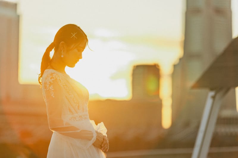 風に揺れる前髪、新郎様を待つ新婦様、、、のイメージです。笑