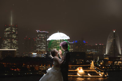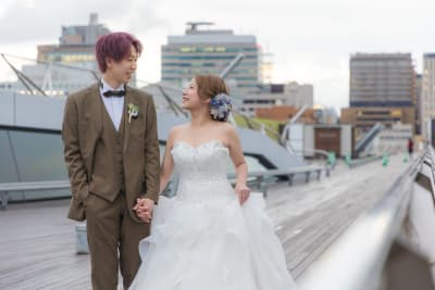 少しずつ日が落ちて街のライトが灯る時間帯まで、移り変わる景色と一緒におふたりを残すことができました^^