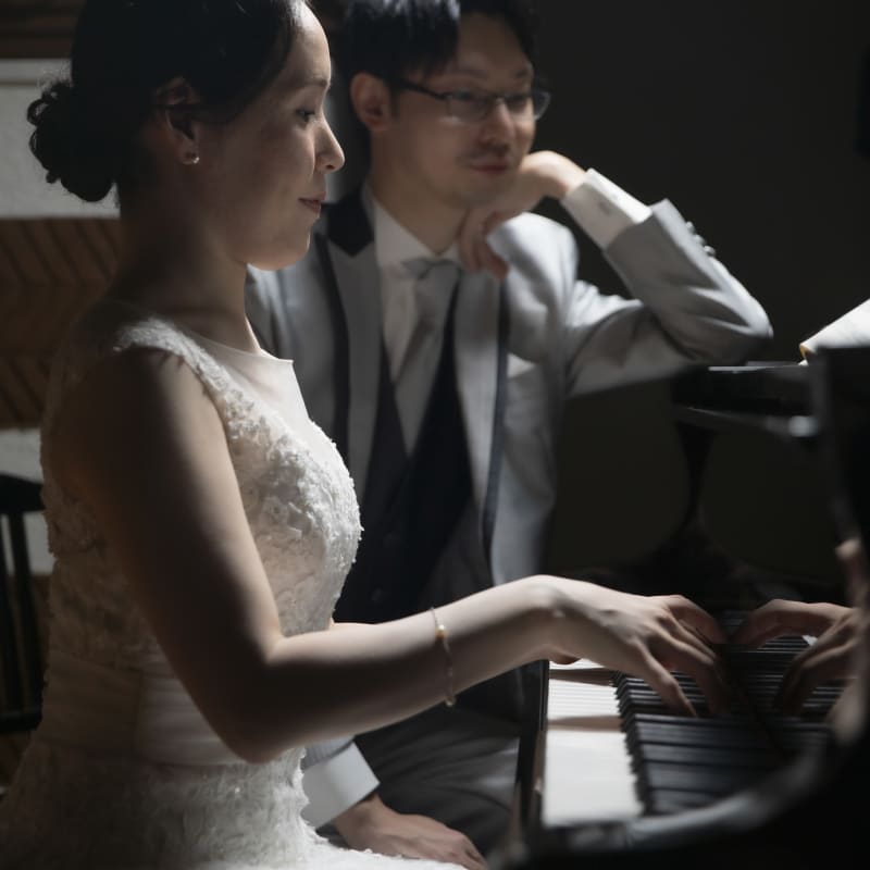 「ピアノを奏でる新婦様を優しく見守る新郎様」がテーマ。