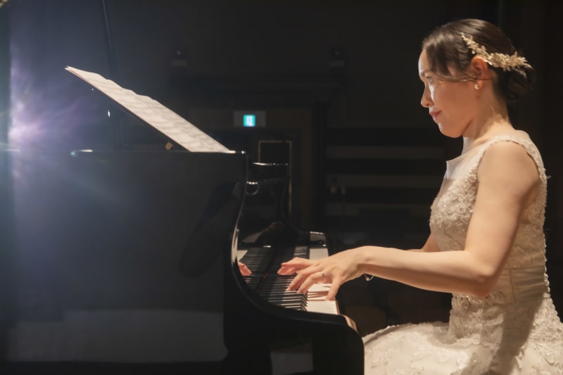 新婦様の眼差しは真剣そのもので、指は激しく鍵盤を弾き、美しい音色を紡ぎました