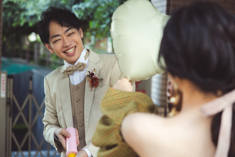 撮影前のオフショット!風船を膨らませるお二人を撮ってみました^^