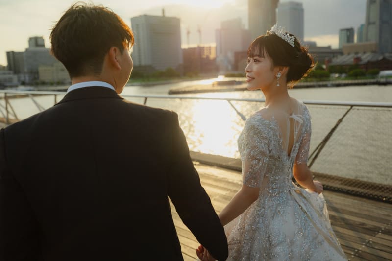 変わりゆく空の色や景色とともにお二人のお写真を残せるプランとなっております。