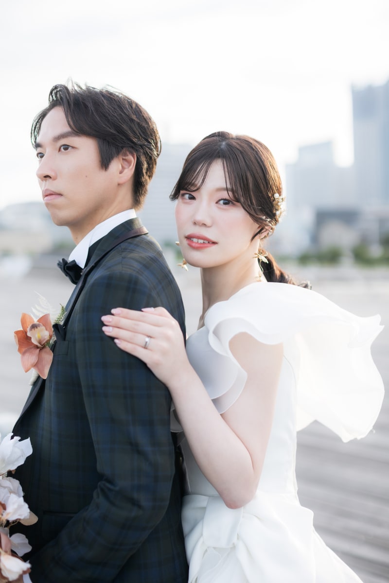 【横浜で記念日】汽笛が二人のスタートを祝う横浜のロケーションで美しい一枚を