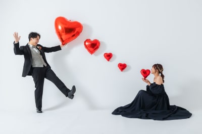 おふたりがご持参くださったブーケやハートの風船など、想いのこもったアイテムたちが撮影をさらに彩ってくれました^^