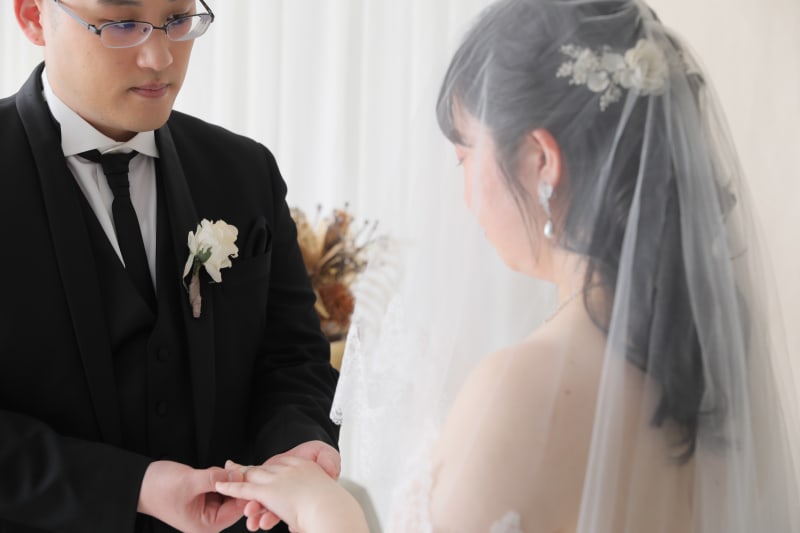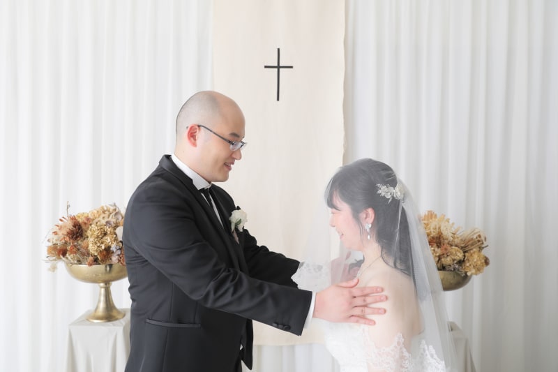 新婦様は真っ白なウェディングドレスを見に纏い、新郎様は王道の黒いタキシードでカッコいい雰囲気でした!