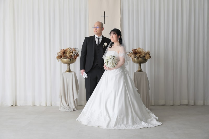 チャペルの背景ではキリッとした表情で、かっちりとした立ち姿を撮らせていただきました!