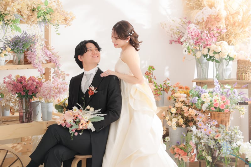 駅前店では、お花屋さんのような背景や、真っ白のシンプルな背景で撮ることができます!