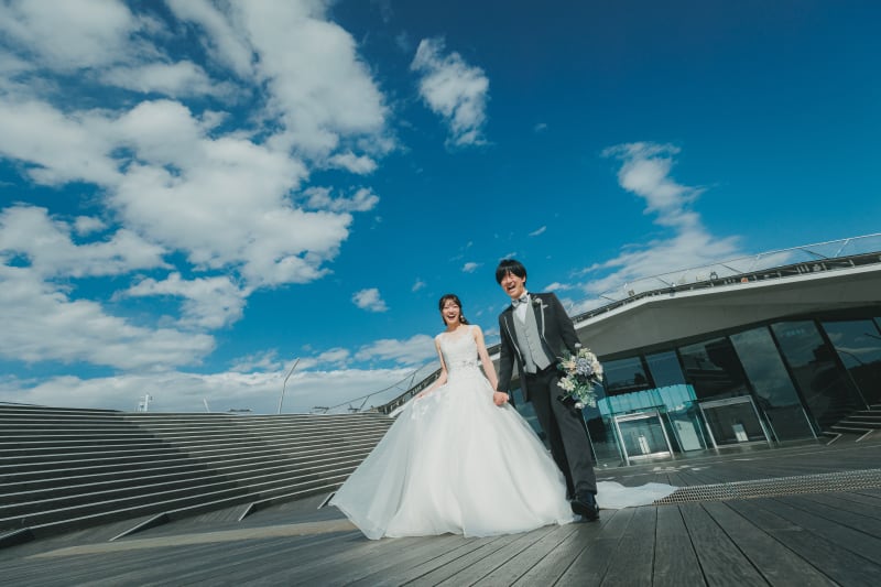ご新婦様は白ドレスをお召しくださったので、青空と相まって非常に素敵なお写真になりました^^