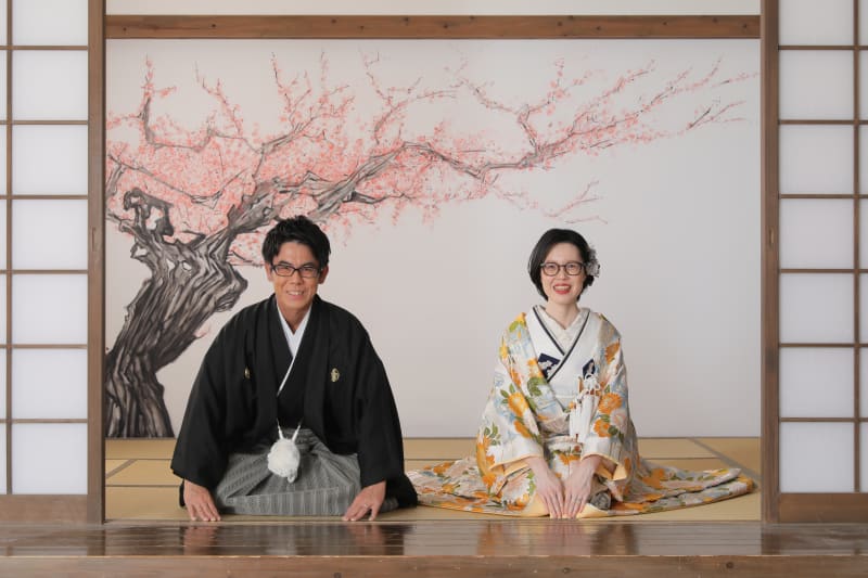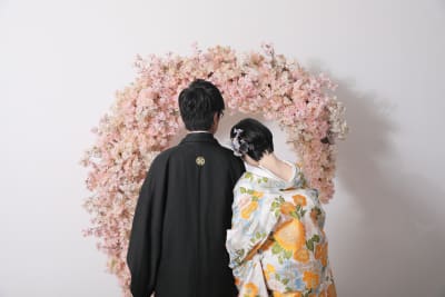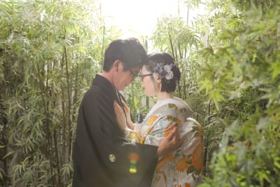 今回は屋内庭園スタジオで和装のおふたりを撮りました!竹林、桜、紅葉、暖簾…と、いろんな背景があるので短い時間でも雰囲気を変えながらしっかり残せます。