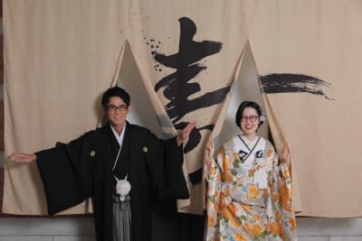 スタジオには和装ならではの暖簾もあります!新郎様が勢いよく出てきてくれました(笑)