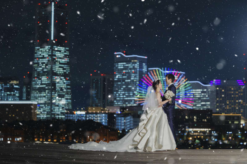 みなさんこんにちは!スタジオアクア横浜駅前店の廣田です!! 今回は大桟橋でのロケーション撮影を行ったのでご紹介していきたいと思います^^ クールかつ、ロマンチックな撮影していきました! 冬らしさを現すために雪を取り入れました♪ それでは早速お写真見ていきましょう!
