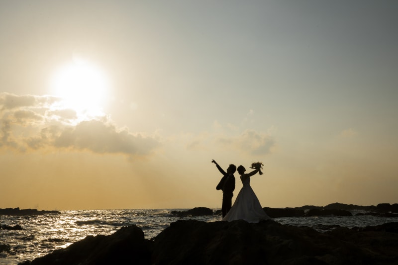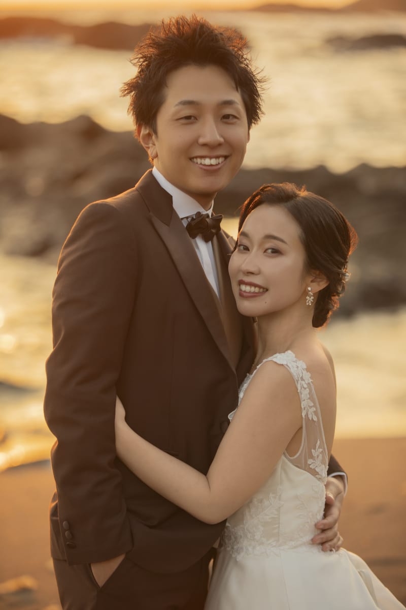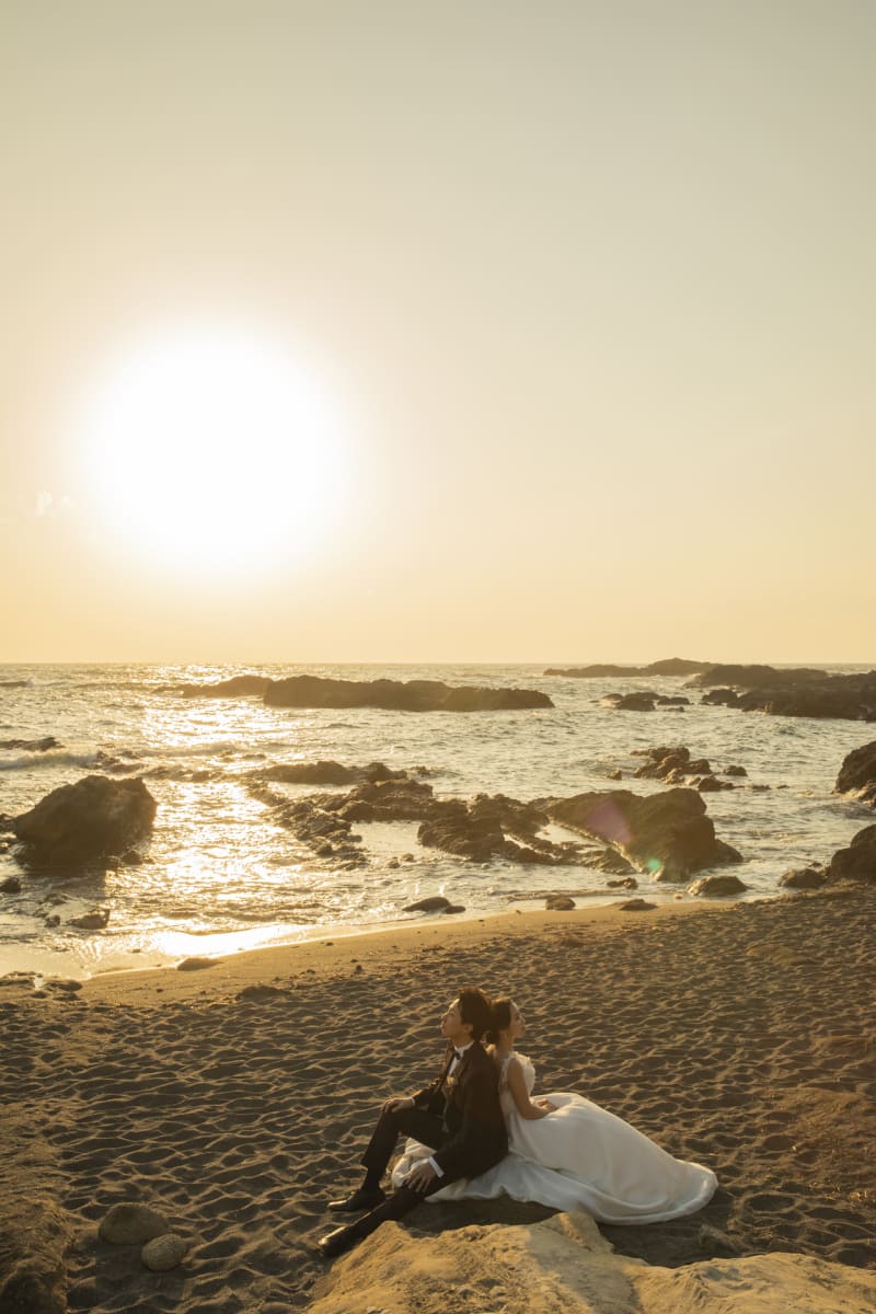 城ヶ島の海と夕日に溶けこむヘアメイク