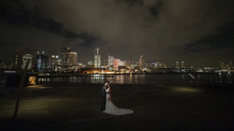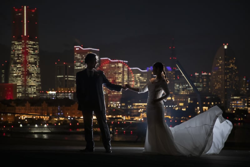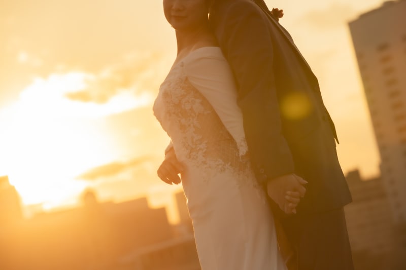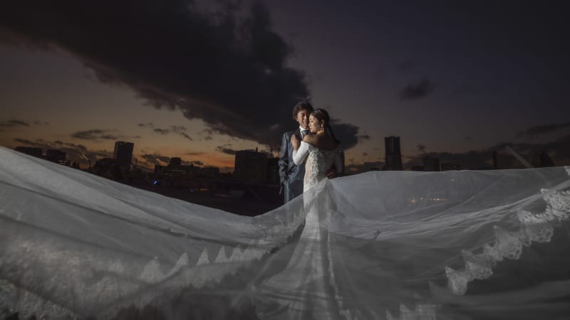 お二人が強く希望されたヴェールショット。空がドラマチックに染まりました。