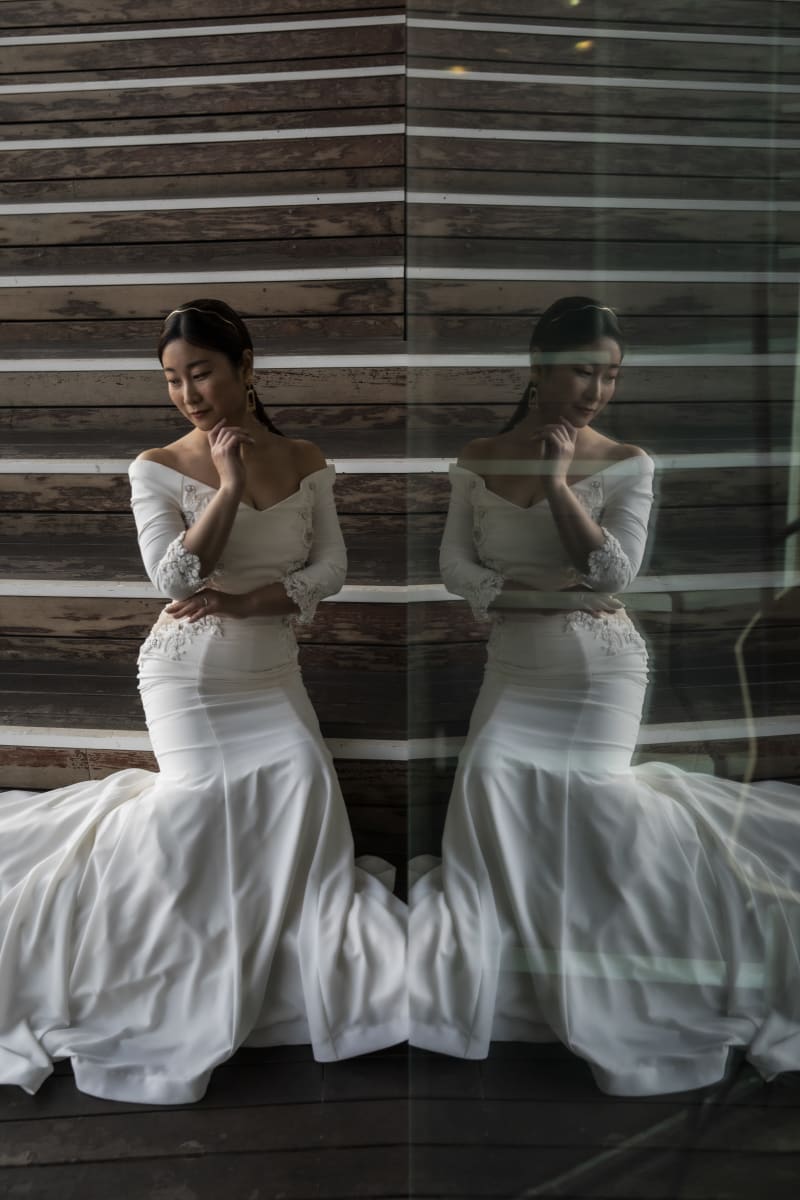 まるで絵画のような美しさ。映り込みをいかした新婦様のソロショットです。