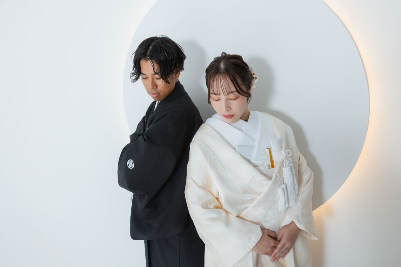 〈 和装 〉ご来店回数 2 回(オンライン相談会の場合は1回)撮影相談会 → 撮影当日 (衣装選びは撮影当日に行います) → 商品の発送