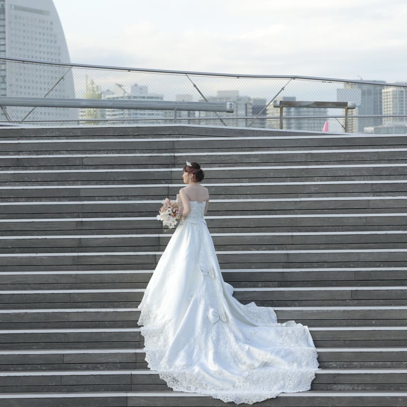 ドレスのトレーンが長く階段に綺麗に流れるのもロケーションの広さをいかせるおすすめショットになっています♡