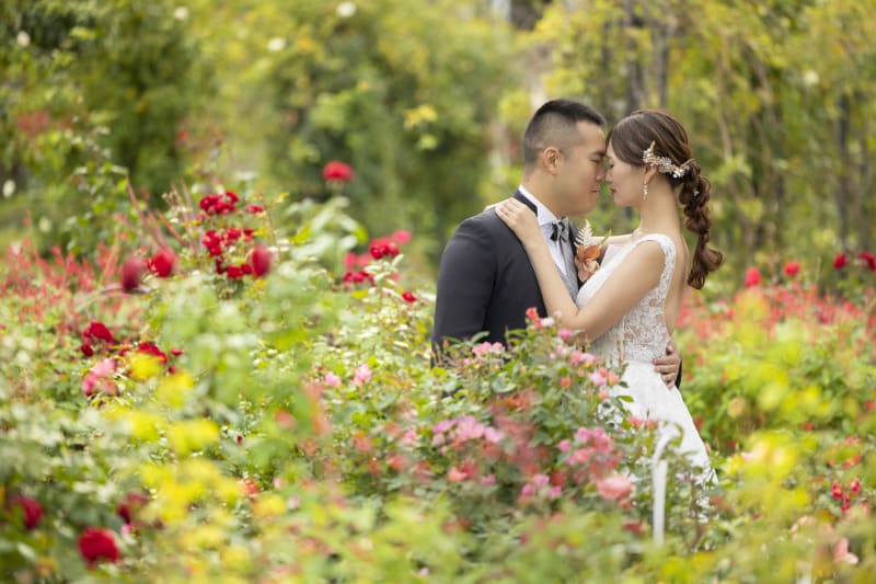 春の時期もとってもたくさんバラが咲くのでお花との撮影をご検討中のお二人はぜひご覧くださいね!