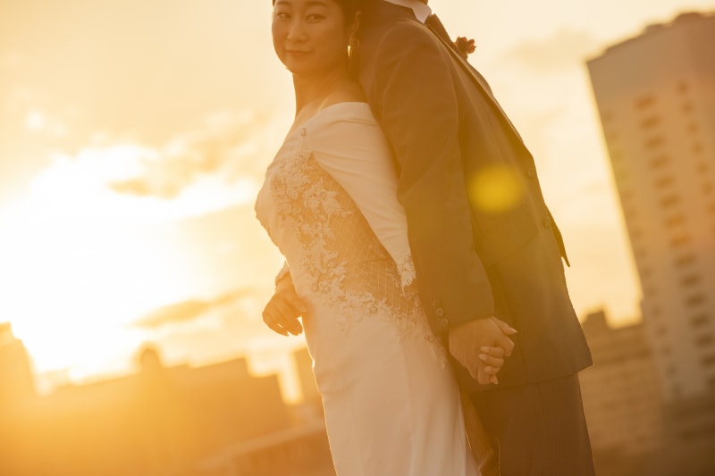 スレンダーなお二人にはドラマチックな夕景がぴったりです。