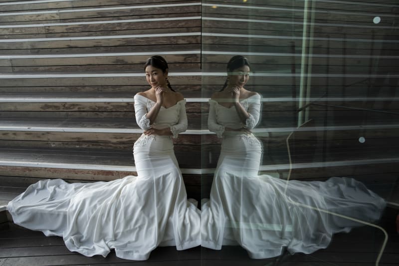 ガラス面を活かして新婦様のソロショット。まるで絵画のよう。