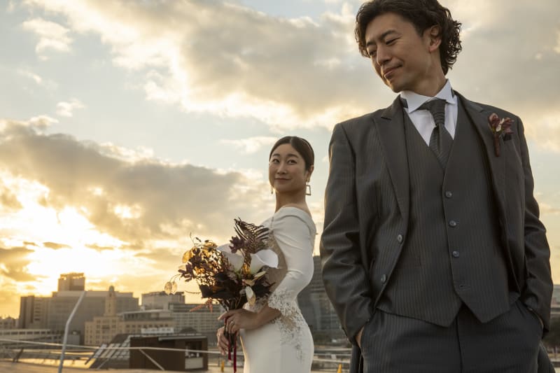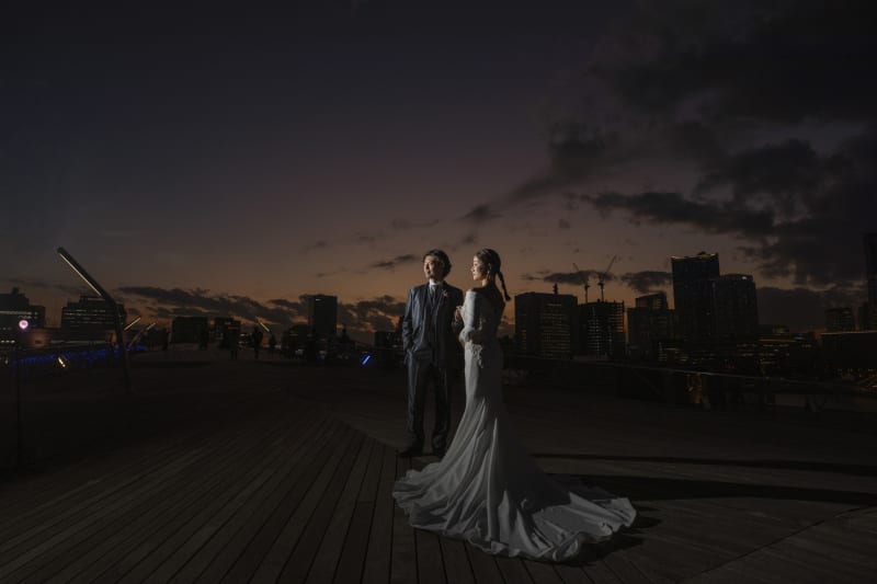 本日は大桟橋での夕景〜夜景のご紹介です。クールでスタイリッシュなお二人でした。太陽もそれに合わせて輝いてくれました。