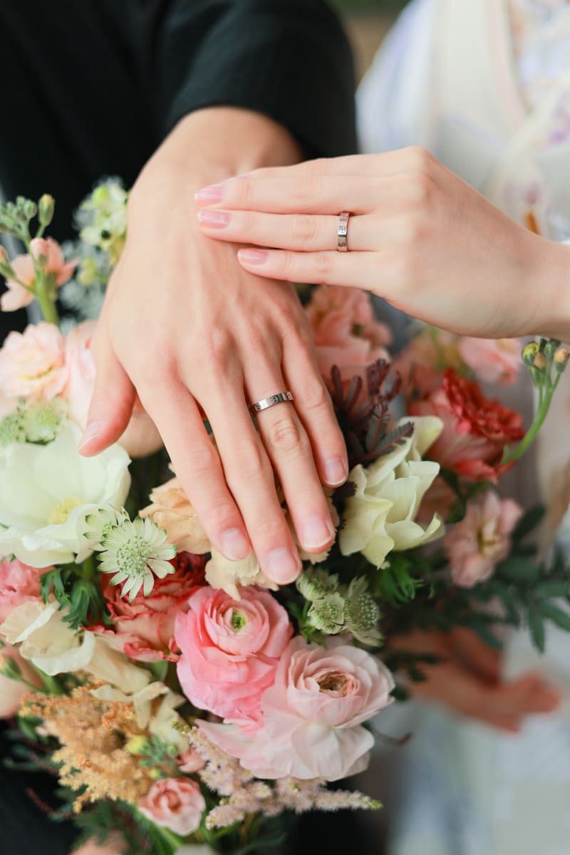 生花のブーケをお二人のリクエストを元に作成し、撮影で使っていただけます^^