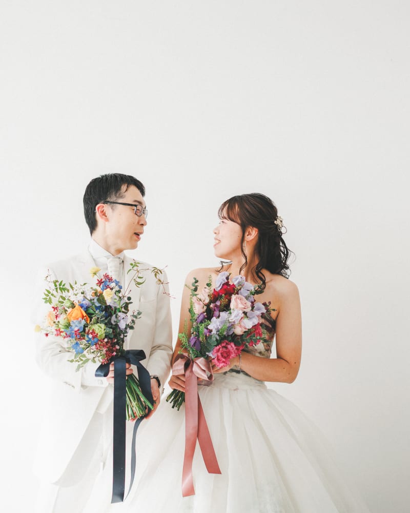 結婚10周年のアニバーサリーに、フローリストの新婦様が選んだのは主役級の華やかなドレス。