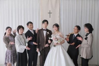 チャペル背景で立ち姿から始まりご家族様にも参加していただきながら和やかな雰囲気のなかで撮影していきました^^