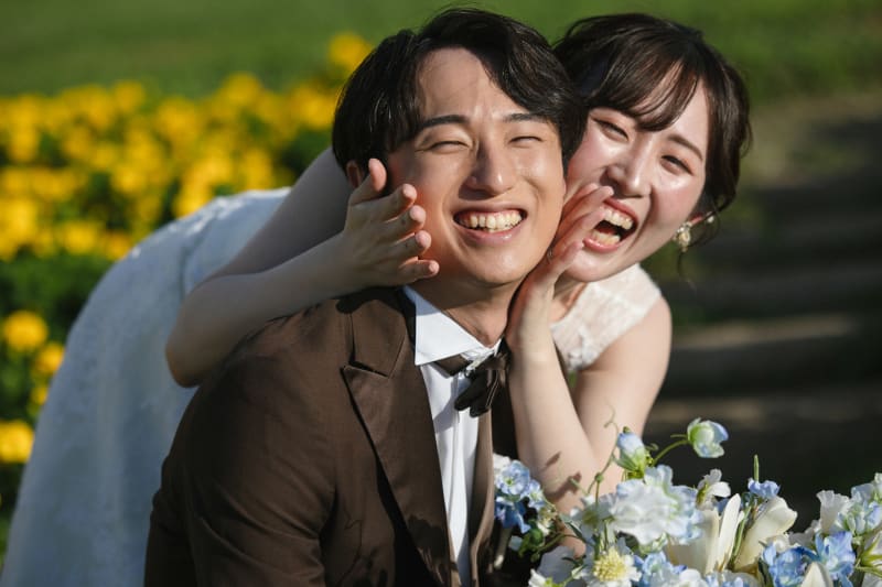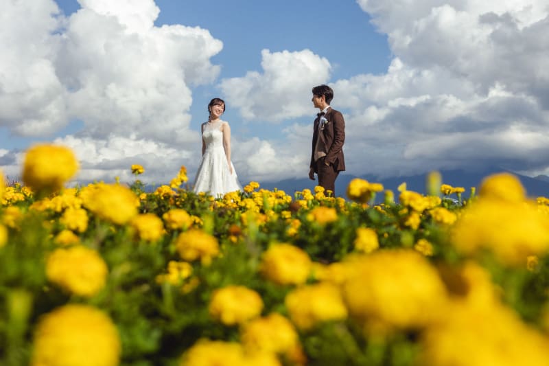 季節ごとに主役が変わるお花畑。今の季節しか出会えない彩りが、お二人の門出を祝福してくれているようです。