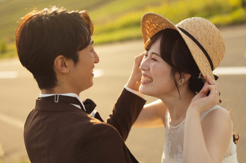 麦わら帽子から覗くその笑顔は、どんな絶景よりもまぶしくて。 この幸せな光が、お二人の未来をずっと照らし続けますように。
