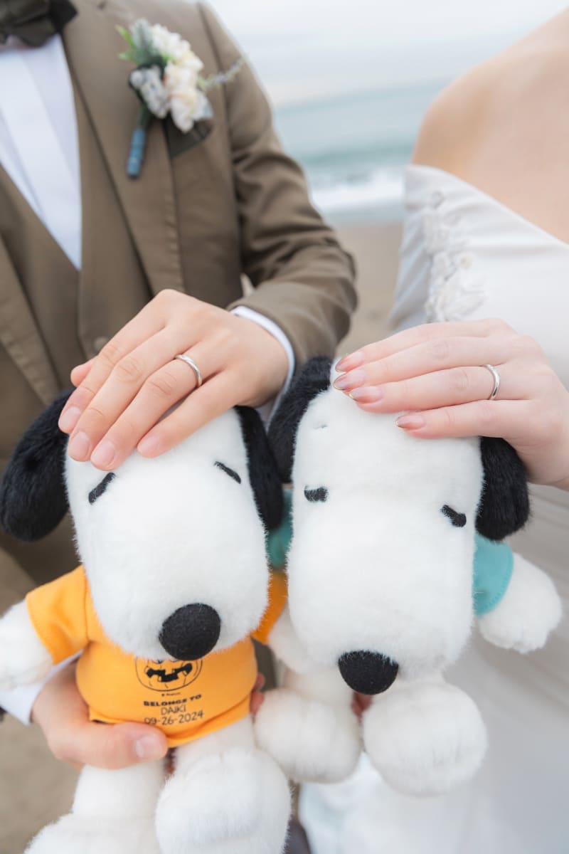 ふわっふわの可愛いスヌーピーも撮影に参加してくれました♡お二人の指輪と一緒に^^